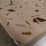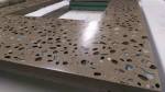 The Root Beer jelly beans, Clear Plate glass, Teal jagged glass, Coated mirror nuggets and the natural color of this special blend of Concrete,,, with that backsplash… Score!